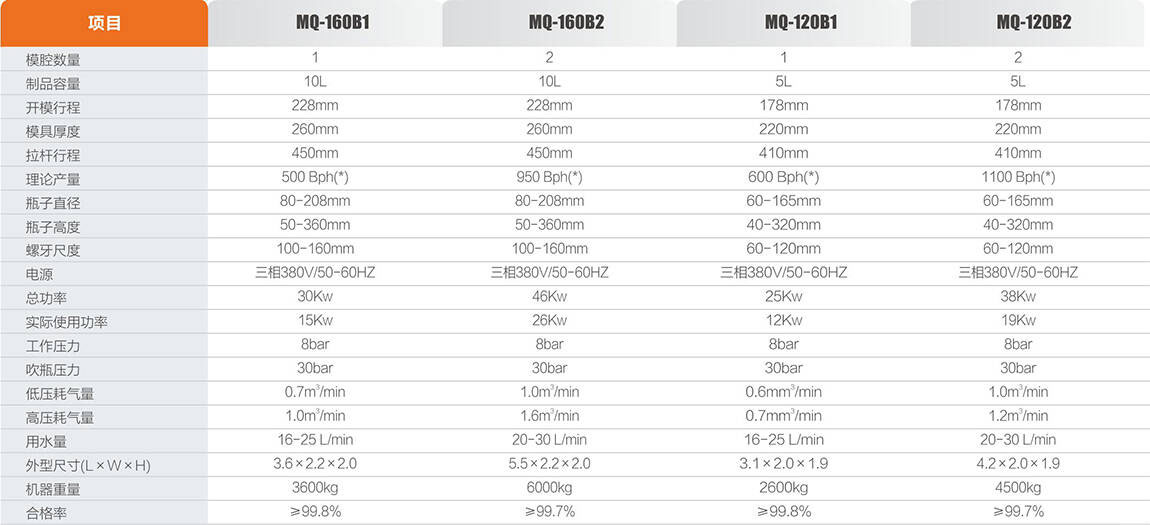 采用手(shou)工放瓶(píng)坯控制(zhi)方式,避(bì)免瓶坯(pī)表面由(yóu)于相㊙️互(hù)之間摩(mo)擦而降(jiang)低瓶坯(pi)表面光(guāng)潔度。 日(ri)本三菱(ling)伺服電(diàn)機驅動(dòng),配備台(tai)灣法斯(si)頓減速(su)機,穩定(dìng)、高💘效☀️、節(jiē)能。 光電(dian)開關、接(jie)近開關(guan)、繼電器(qi):日本歐(ou)姆龍,控(kòng)制精度(du)準、反應(yīng)🌈速⭐度快(kuai)。 紅寶石(shi)紅外線(xiàn)燈管加(jiā)熱、穿透(tou)力強、加(jia)熱均勻(yun),高效節(jiē)能40%。 空氣(qi)開關、接(jie)觸器、開(kāi)關電源(yuán):法國施(shi)耐德,經(jīng)久耐用(yòng)。 日本三(san)菱或德(dé)國西門(men)子進口(kou)人機界(jiè)面控制(zhì)程序,性(xìng)能穩定(ding)、操作簡(jian)單等。 德(dé)國FESTO油水(shuǐ)分離器(qi)及日本(ben)SMC動作閥(fa)、切換速(sù)度快、故(gu)障♌率低(dī),運💘行安(ān)全可靠(kao)。 美國派(pài)克高壓(yā)吹氣閥(fa),靈敏性(xìng)高,快速(su)吹制産(chan)品成型(xing)✍️。 動作和(hé)吹氣分(fèn)爲兩部(bu)分,以滿(man)足吹瓶(ping)、動作不(bú)同氣壓(yā)的需求(qiú),實現高(gāo)氣壓吹(chui)制産品(pin)。 伺服電(dian)機獨特(te)鎖模方(fang)式,開合(he)模速度(du)快、動作(zuo)平穩。 伺(si)服電機(ji)同步拉(la)伸,有效(xiao)控制産(chǎn)品吹制(zhi)成型,成(cheng)品率高(gāo)。 整機具(ju)備自動(dong)報警、自(zì)動故障(zhang)檢測判(pan)斷功能(néng),檢修方(fāng)便快捷(jié)。